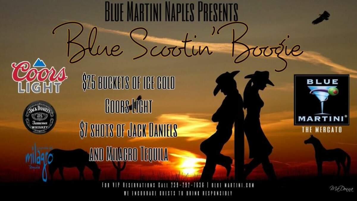 Every Monday night is country night at Blue Martini. Live country music all night. $25 buckets of Coors, $7 Jack Daniels and Milagro tequila shots, Monday Night Football on the big screen, plus raffles and giveaways! Monday night, the only place to be is Country Night at Blue Martini in Naples at Mercato!