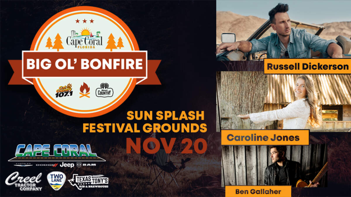 The Big Ol' Bonfire is the premier musical event in Cape Coral. The Cape Coral Parks and Recreation Department is proud to bring some of the best talents for a night of country music, food, and fun. Join in the citywide celebration of our bonfire and country concert!