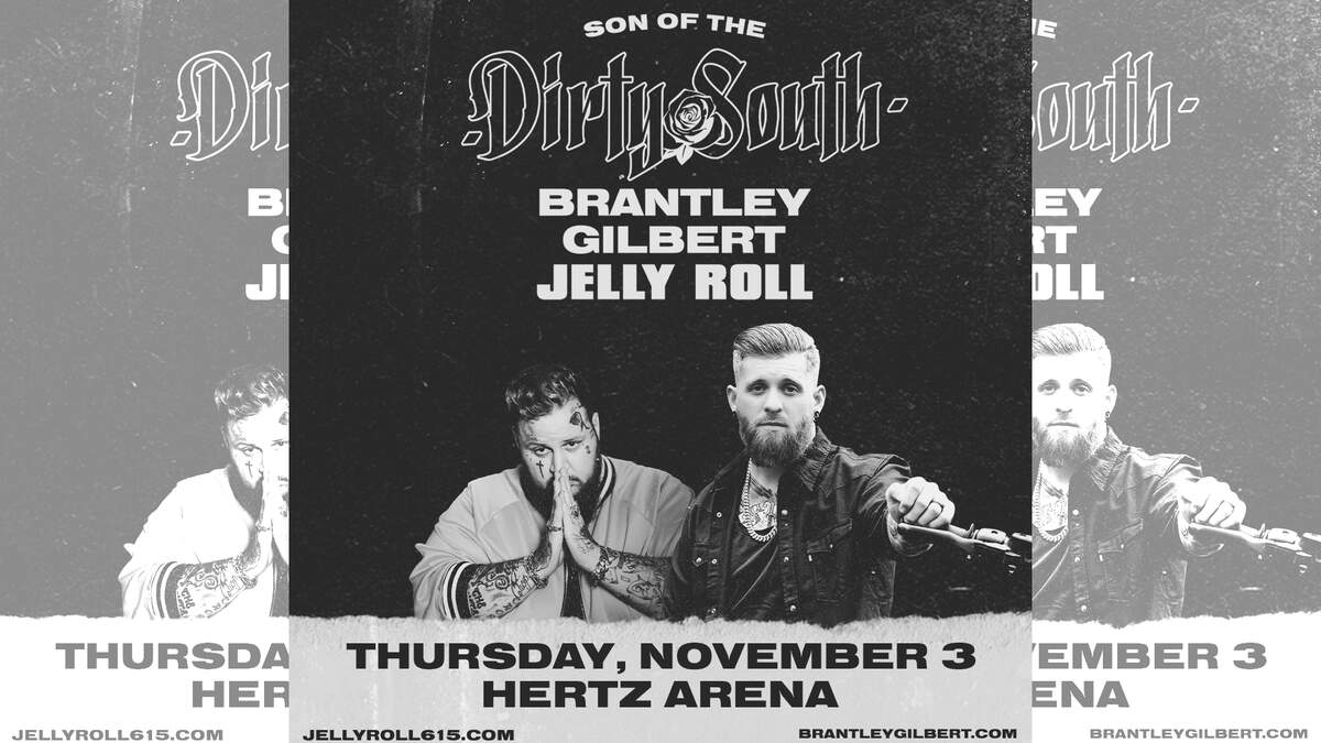 The Son of the Dirty South tour comes to Hertz Arena November 3rd. Brantley Gilbert w/Jelly Roll! Tickets are on sale as of 8/26 at 10am at https://www.ticketmaster.com/event/0D005D118D79A443